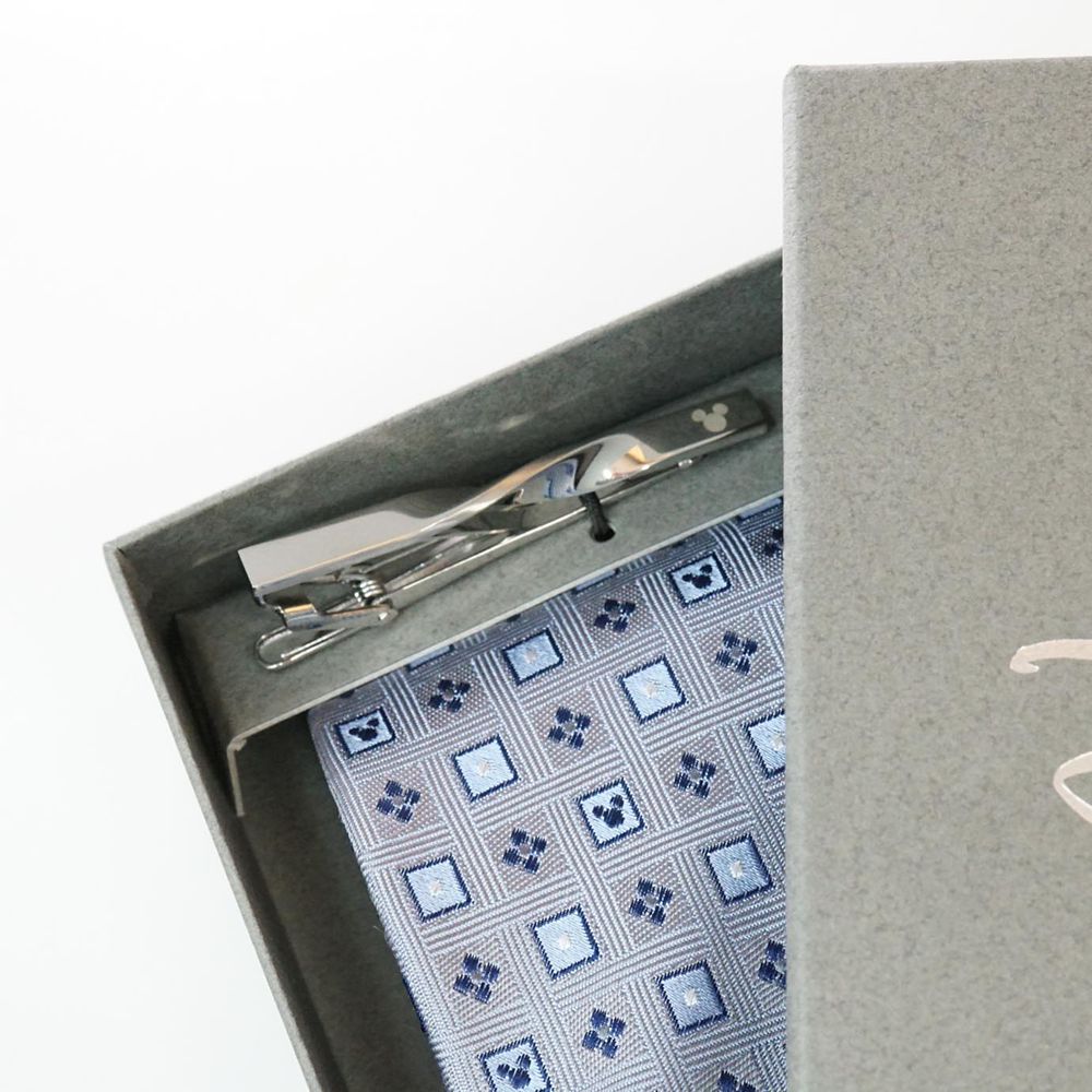 タイピンにもさりげなく、ミッキーの可愛らしい顔のシルエット(三つ丸)がワンポイントでデザインされています。