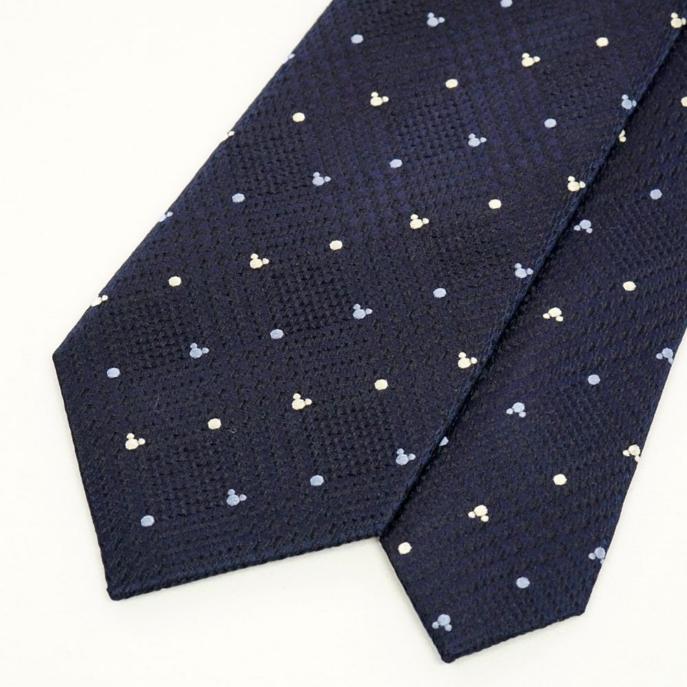 ☆Disney Character Design Tie☆ グレンチェックにドットとミッキーのミツマルシルエットがデザインされたネクタイ。 いつものビジネスシーンをちょっと華やかに演出してくれるディズニーのネクタイ。グレンチェック柄がさりげないおしゃれさをプラスしてくれます。落ち着いた色合いなので、どんなスーツにも合わせやすく、さまざまなコーディネートに活躍してくれます。 ディズニーがお好きな方へのプレゼントにもおすすめです。