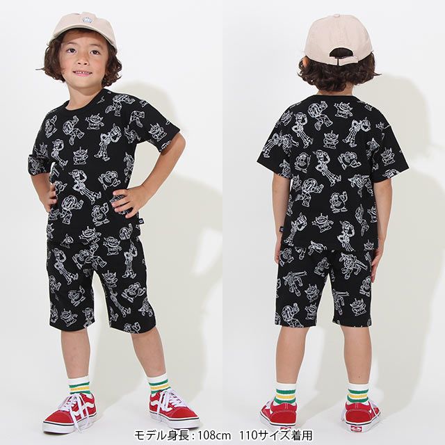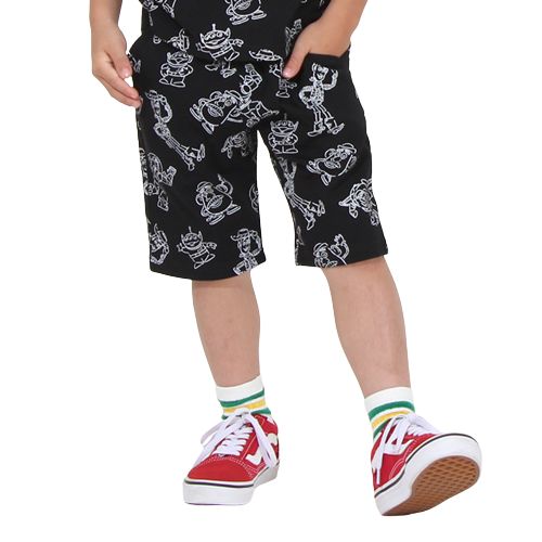 人気キャラクター『トイストーリー』の総柄ハーフパンツ。シンプルな単色デザインだから色んなトップスに合わせやすい♪