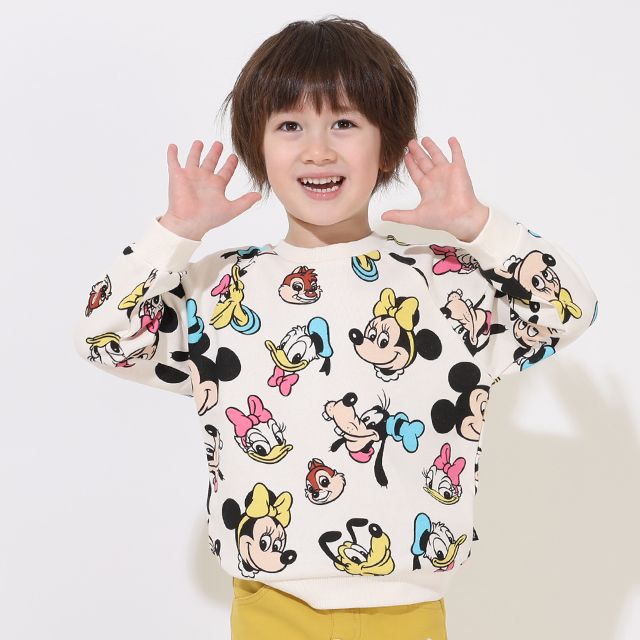 【ベビードール】ミッキー&フレンズ 親子お揃い 総柄トレーナー 8704K / ミッキー ミニー グーフィー チップ デール プルート ベビーサイズ キッズ リンクコーデ ペアルック 親子コーデ トップス 長袖 トレーナー