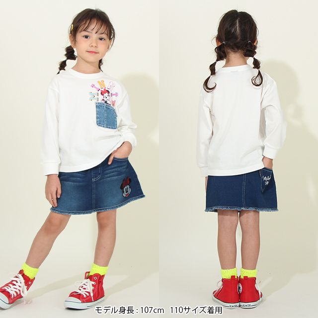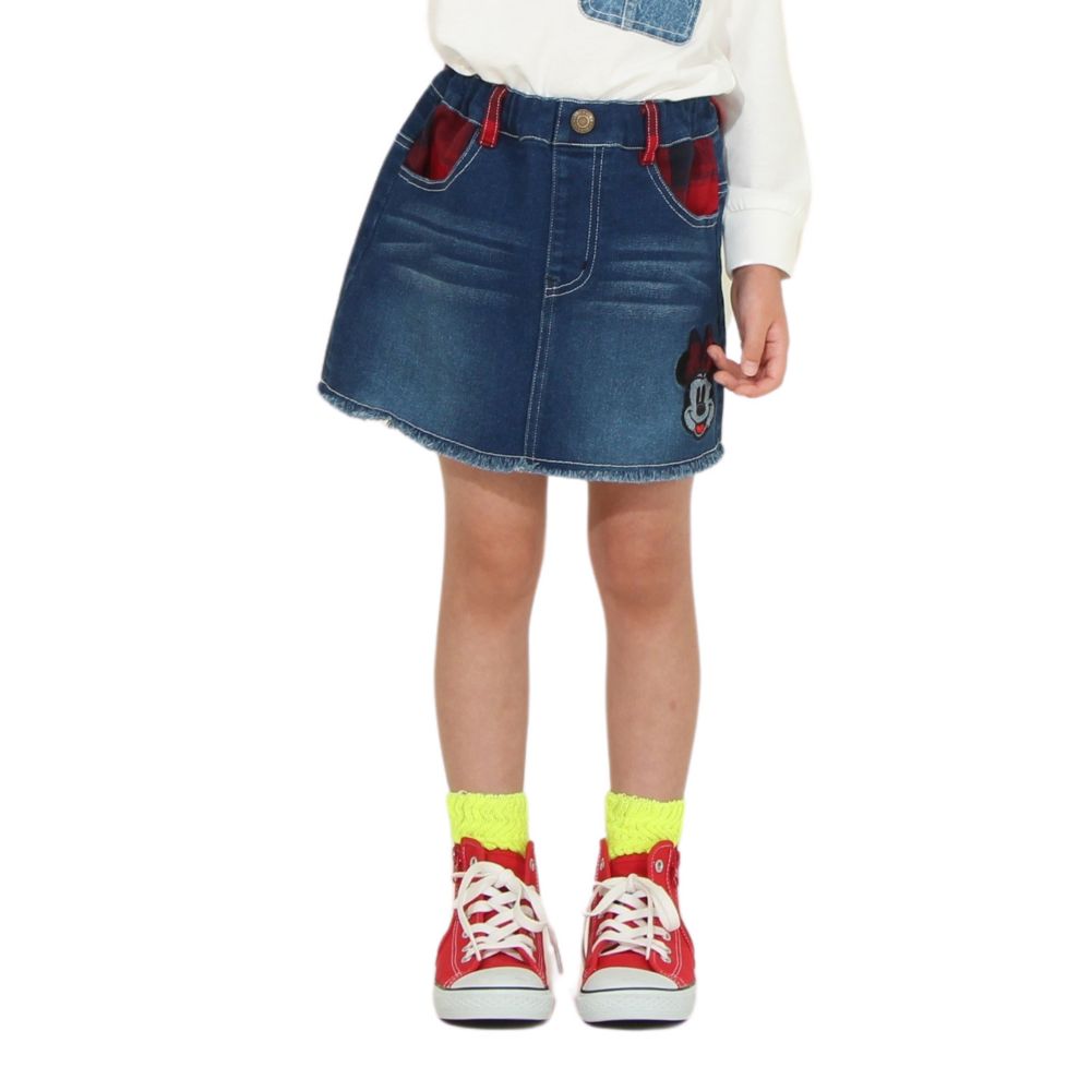 【ベビードール】ミニー デニムスカート 8744K / ベビーサイズ キッズ ミニスカ ジーンズ ストレッチ 楽ちん ウエスト総ゴム ゴム穴付 ベルトループ フェイクボタン ガールズコーデ ガーリー