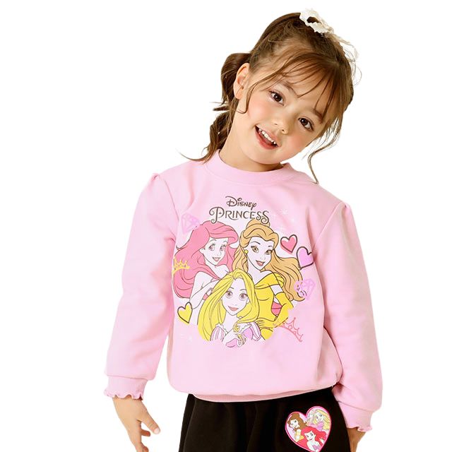 ベビーサイズ キッズ 女の子 こども 子ども服 トップス 長袖 プルオーバー フード無し ポップ カジュアルコーデ ロゴ ベーシック カジュアル シンプル クール かっこいい おしゃれ 可愛い かわいい ピンク ラプンツェル アリエル ベル リトルマーメイド 美女と野獣 お姫様