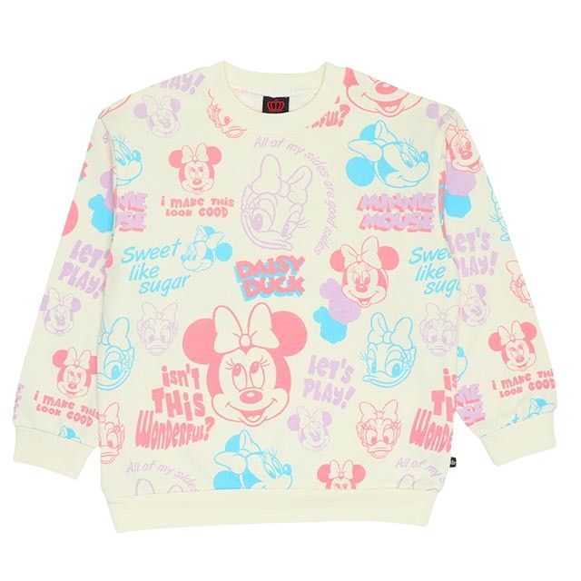 カラフルなディズニーキャラクター達の総柄がポップでお洒落なトレーナ♪
