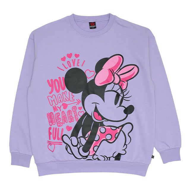 大きいミッキーとミニーのプリントにラクガキ風のグラフィックがトレンド感のあるトレーナ♪