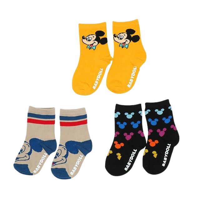 【ベビードール】ミッキー クルーソックスセット 9134 / ベビーサイズ キッズ くつ下 靴下 3足セット 3足組み 3点セット プチプラ 10-13cm・13-16cm滑り止め付き プレゼント 贈り物