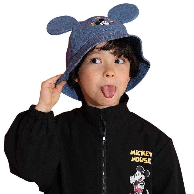【ベビードール】ミッキー デニム耳付きハット 9206 / ベビーサイズ(頭回り:48cm) キッズ(頭回り:54cm) ぼうし 帽子 立体モチーフ
