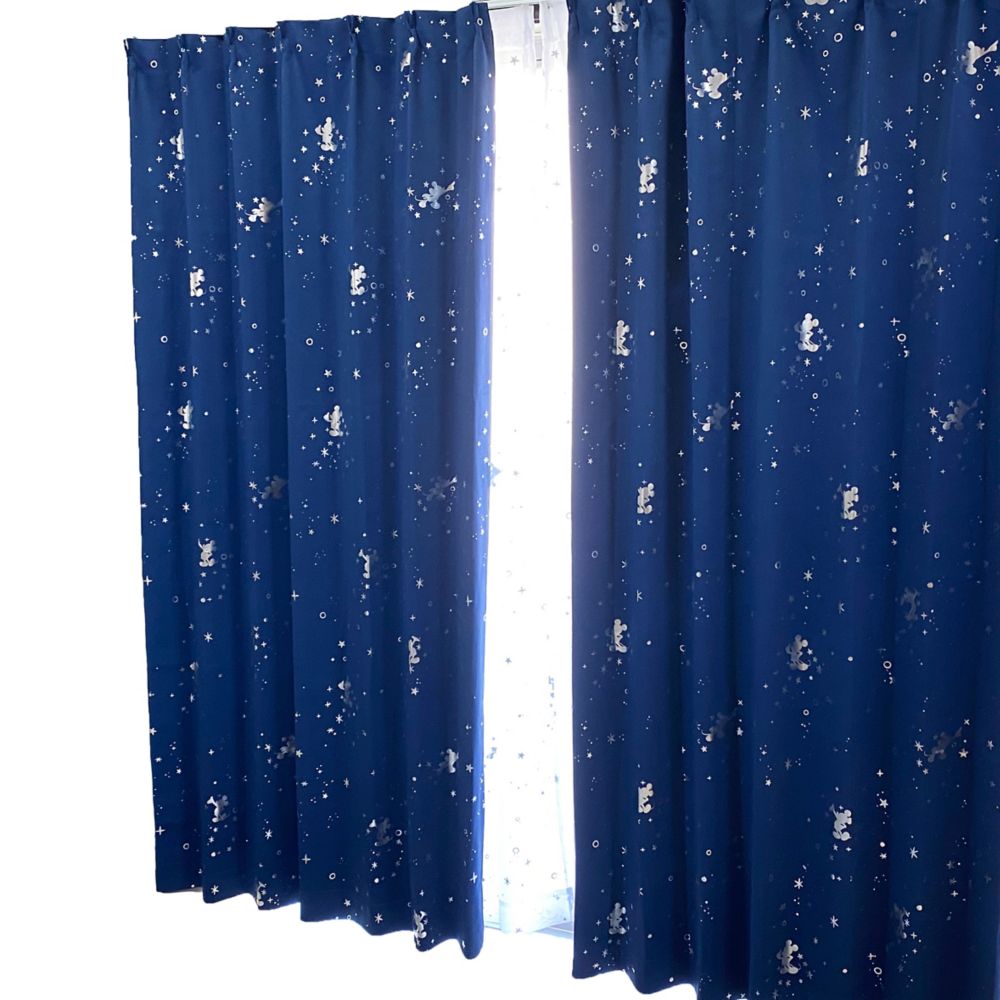 ミッキー 箔プリント 遮光カーテン