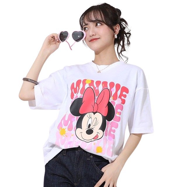 かわいいディズニーキャラクターのフェイスとインクプリントがPOPなTシャツ★