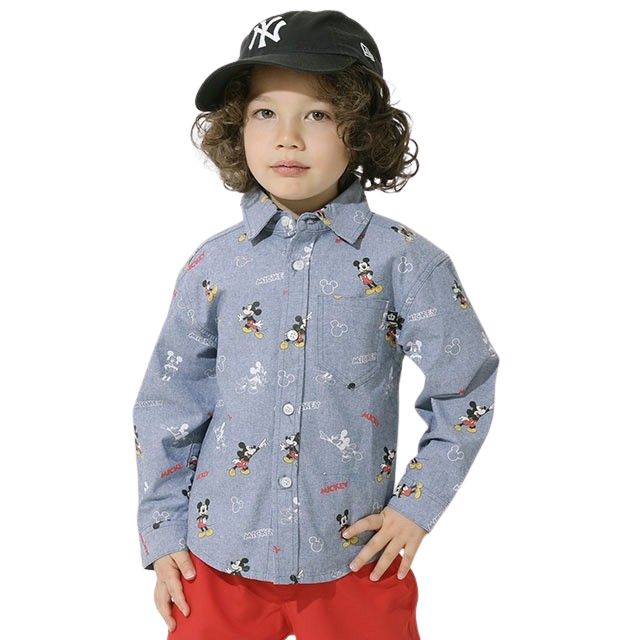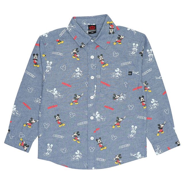 【ベビードール】ミッキー 総柄シャツ 9238K / ベビーサイズ キッズ トップス 長袖 デニムシャツ 羽織り タンガリー 春秋冬 リンクコーデ ペアルック