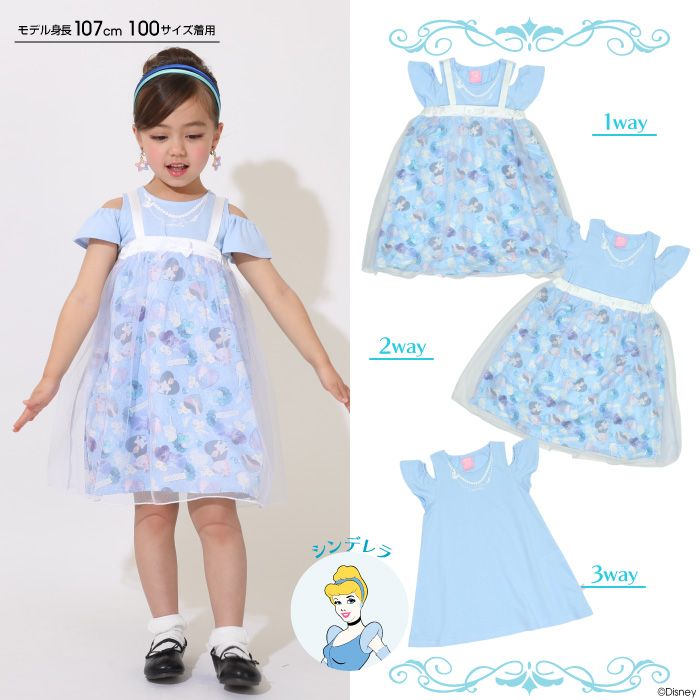 【ベビードール】シンデレラ プリンセス / 3WAYワンピース 9303K / キッズ キャミワンピ スカート 肩紐長さ調整可 ウエストゴム調整可 リボン フリル チュール 肩出し お姫様 なりきる ガーリー