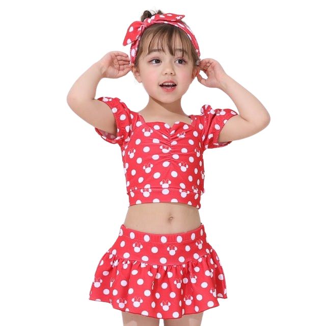 【ベビードール】ミニー セパレート水着 9445K / ベビーサイズ キッズ スイムウェア 上下セット ヘアバンド トータルコーデ 速乾 ガーリー 水玉模様
