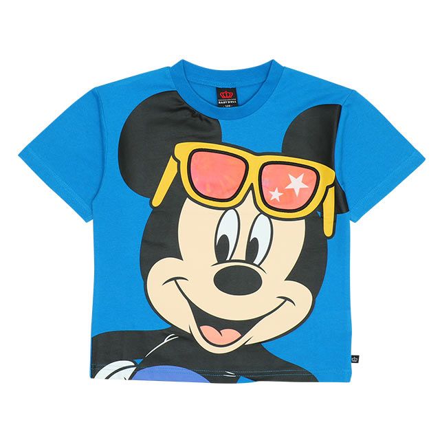 【ベビードール】ミッキー 親子お揃い サングラスレンチキュラーTシャツ 9464K / 角度で柄が変わる ベビーサイズ キッズ リンクコーデ ペアルック 親子コーデ トップス 半袖 天竺素材
