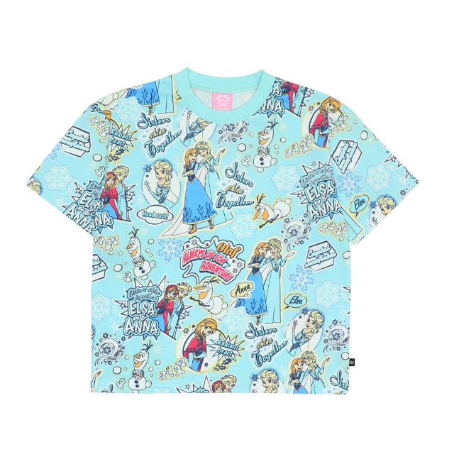 【ベビードール】アナ エルサ オラフ 親子お揃い ステッカー風総柄Tシャツ 9534K / キッズ リンクコーデ ペアルック 親子コーデ トップス 半袖 天竺素材