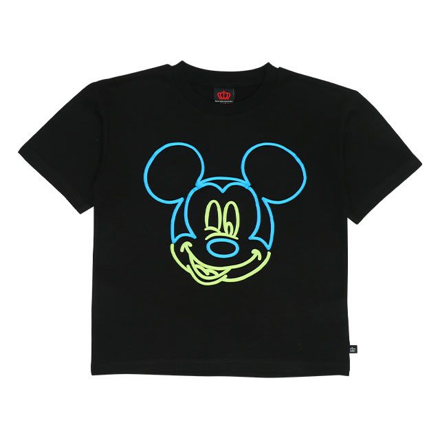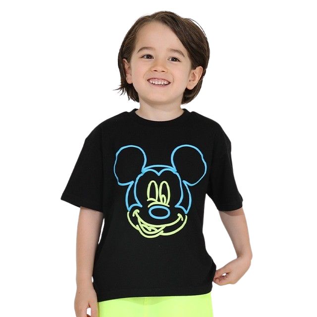 【ベビードール】ミッキー 親子お揃い ネオン発泡Tシャツ 9536K / ベビーサイズ キッズ リンクコーデ ペアルック 親子コーデ トップス 半袖 天竺素材 発泡プリント