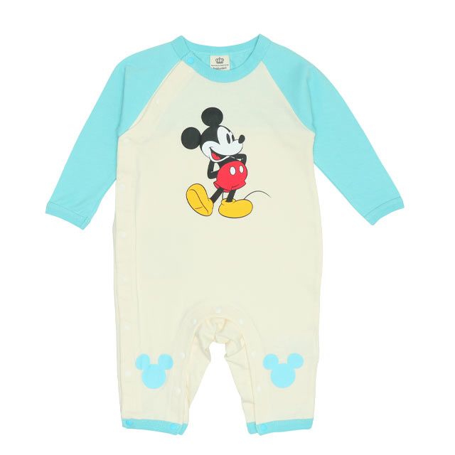 ひざ部分のミッキー・ミニーのアイコンと後ろのカラフルなロゴがポップで可愛い★