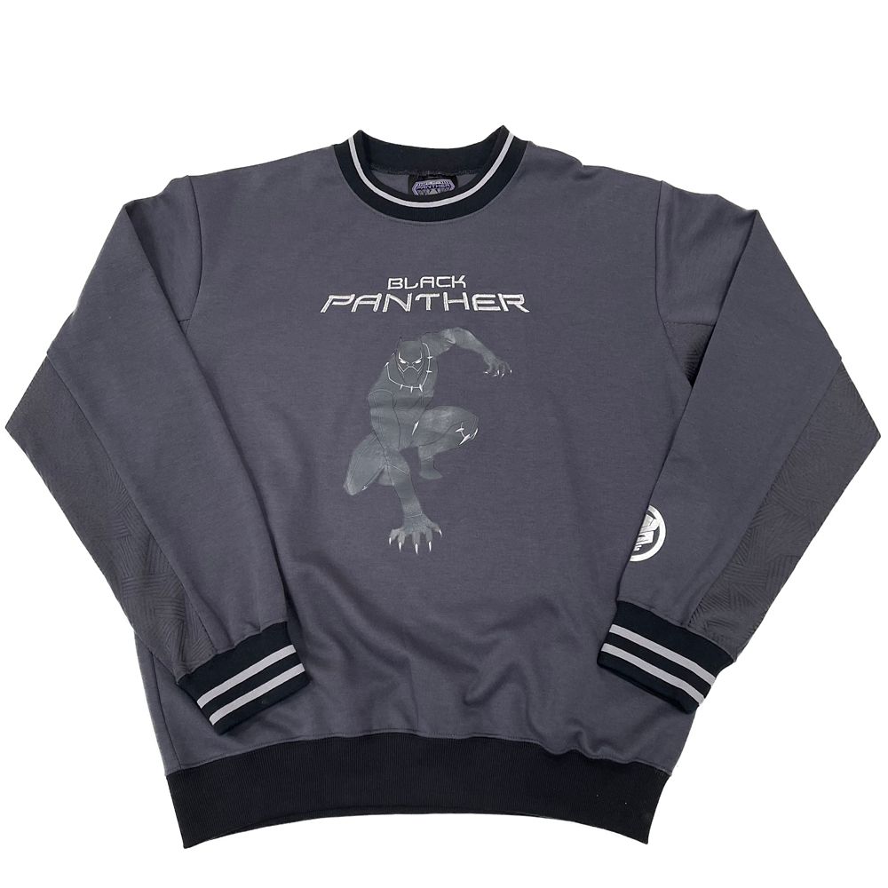 ブラックパンサーのかっこよさをイメージした長袖Tタイプのルームウェアです。袖やパンツの裾口には、シルバーの箔プリントが輝きます★