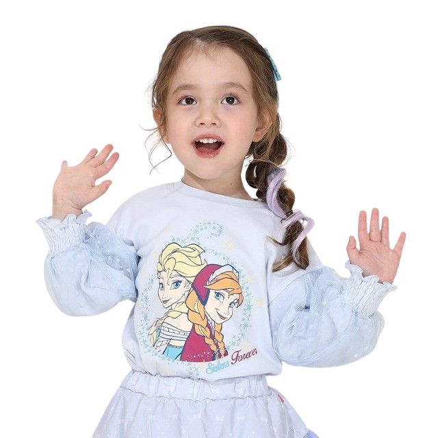 ベビーサイズ キッズ 女の子 長袖 Disney トップス ディズニー チュール トレンド プリンセスコーデ 女の子らしい キュート 人気キャラクターデザイン フェミニン アナ雪 エルサ アリエル ラプンツェル ベル 美女と野獣
