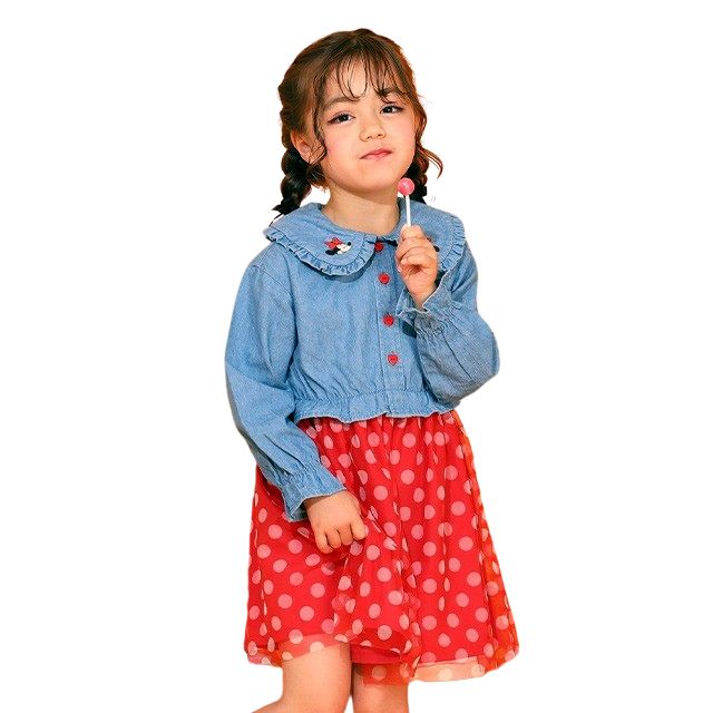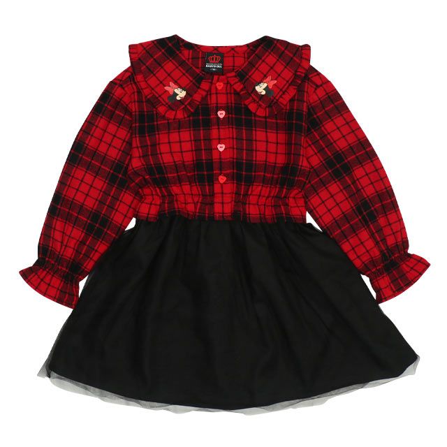 ラブリーなフリル襟とハート型のボタンが可愛いミニーマウスのワンピース★