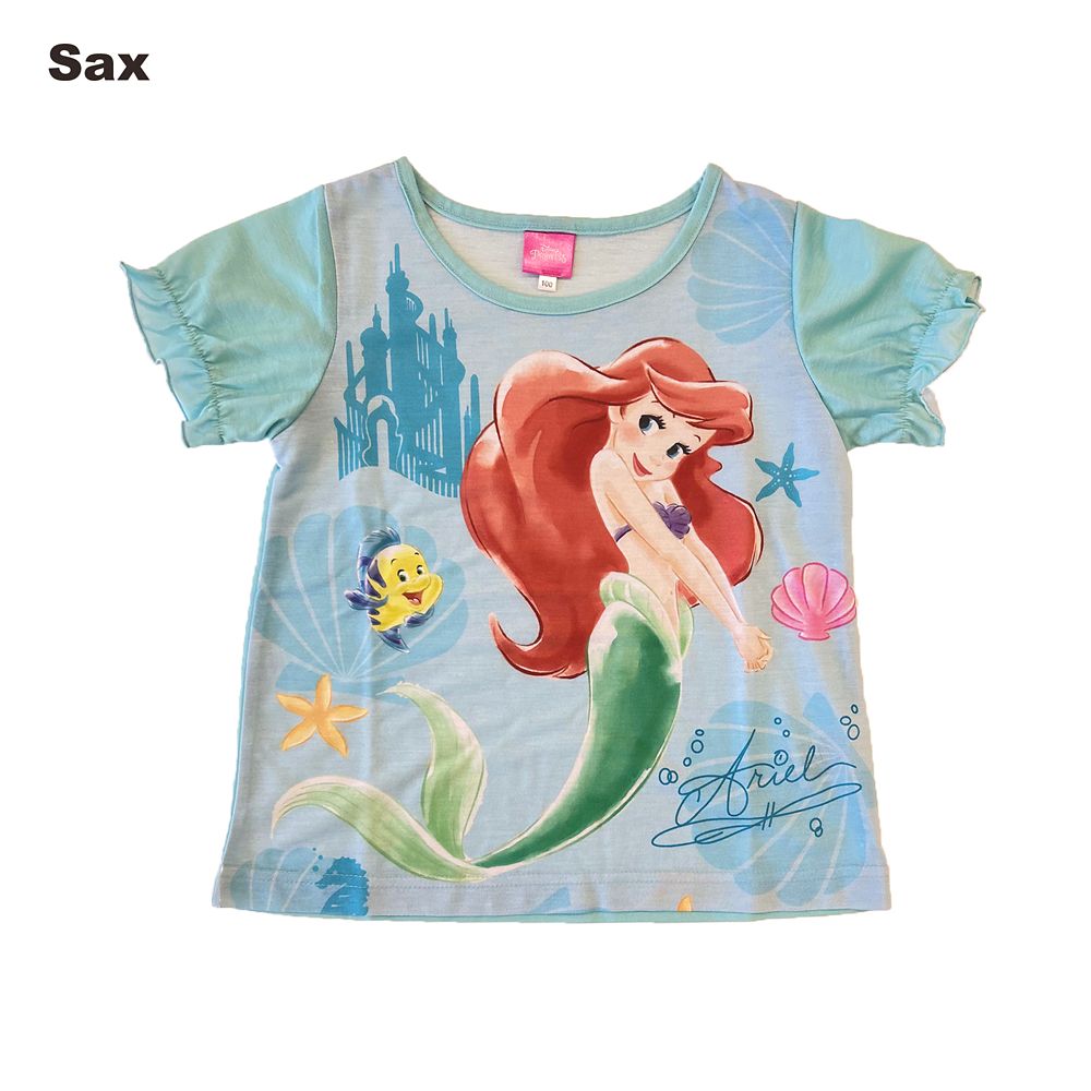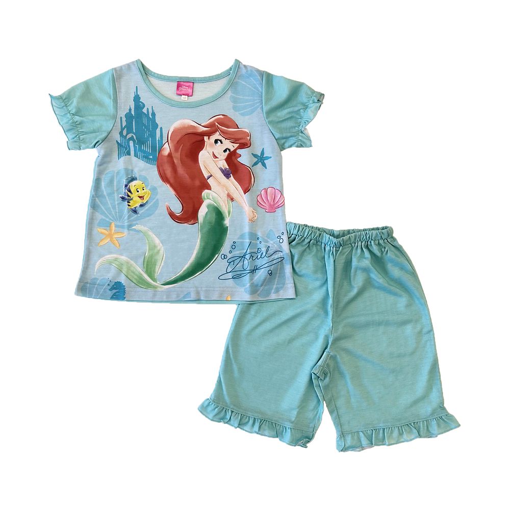 アリエルの大きなプリントされた半袖上着と無地のハーフパンツの組み合わせです☆