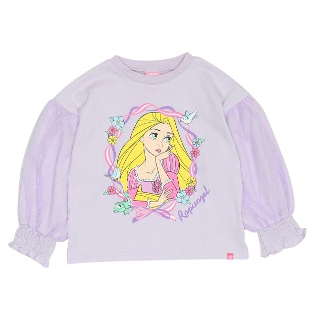 キッズ 女の子 長袖 Disney トップス ディズニー チュール トレンド プリンセスコーデ 女の子らしい キュート 人気キャラクターデザイン フェミニン アナ雪 エルサ アリエル ラプンツェル ベル 美女と野獣 お姫様 フリフリ 可愛い かわいい