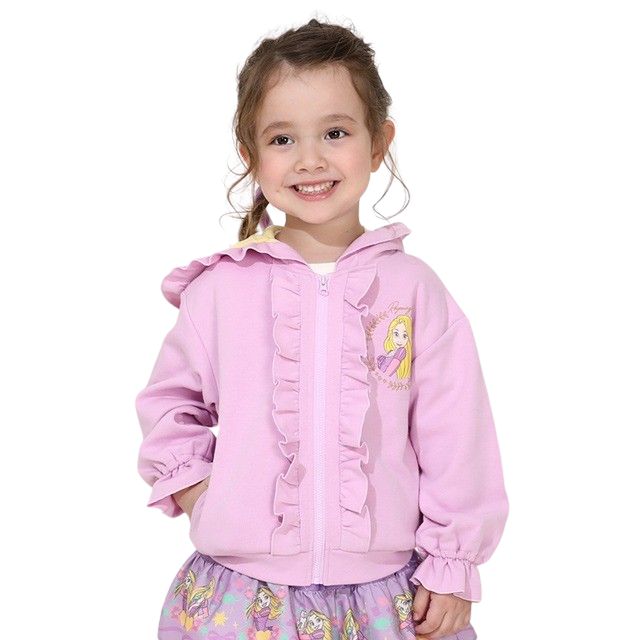 キッズ 女の子 長袖 トップス 羽織り フード付き ブルゾン ライトアウター ジップパーカー ディズニー 人気キャラクターデザイン お姫様 アリエル ラプンツェル フェミニン フリフリ 可愛い かわいい