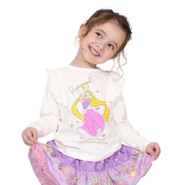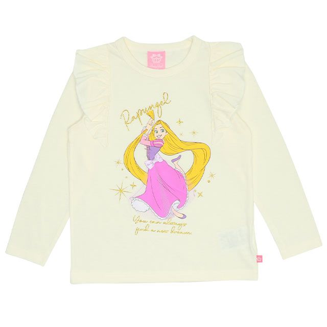 【ベビードール】ラプンツェル プリンセス / 肩フリルロンT 9693K / キッズ トップス 長袖 立体モチーフ 一部ラメプリント、チュール 天竺素材 お姫様 ガーリー