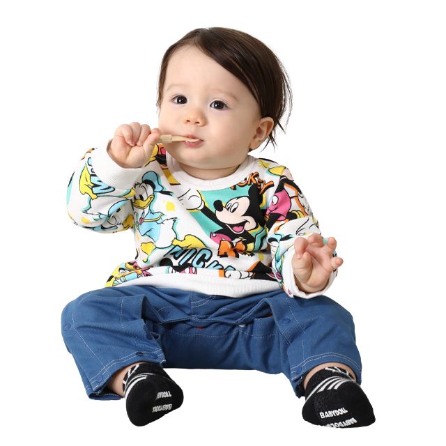 柔らかい肌触りで伸縮性抜群のスウェット素材は元気に動き回る赤ちゃんもリラックスな着心地で、吸収性も◎