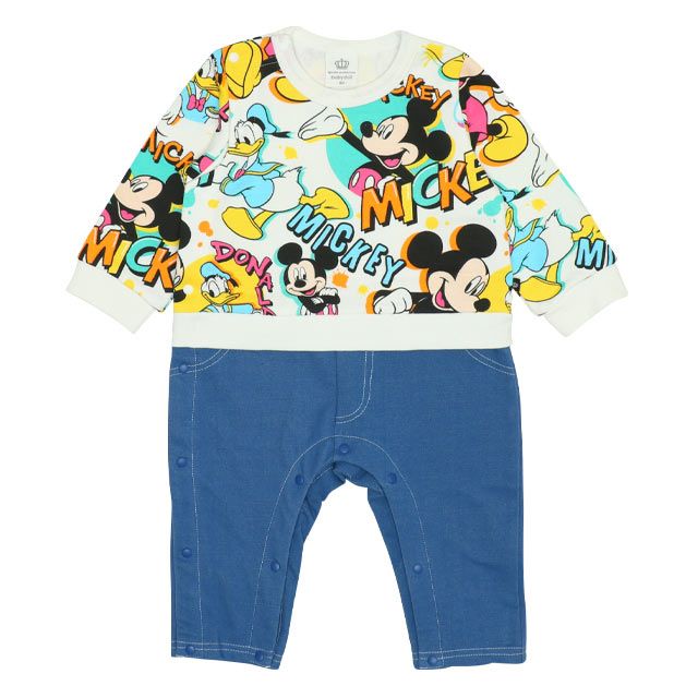 カラフルでポップなDisneyキャラクターの総柄が目をひくロンパース★