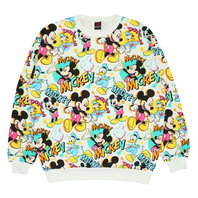 カラフルでポップなDisneyキャラクターの総柄が目をひくトレーナー★
