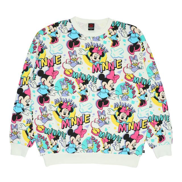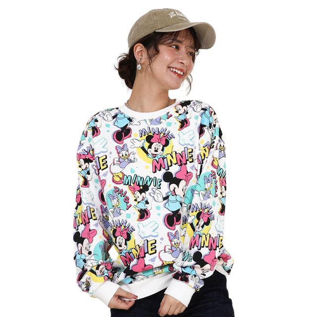 カラフルでポップなDisneyキャラクターの総柄が目をひくトレーナー★