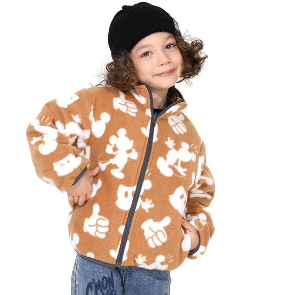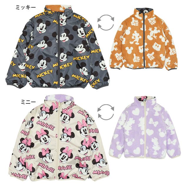 【ベビードール】ミッキー リバーシブルアウター 9900K / ベビーサイズ キッズ トップス 長袖 アウター ブルゾン ジャケット ジャンパー フリース 中綿 軽い 秋冬