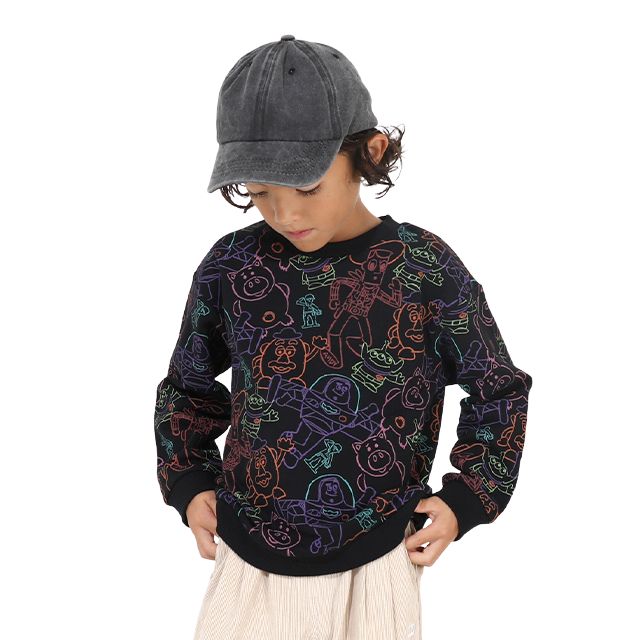 人気キャラクター達のカラフルなイラスト風総柄がおしゃれなトイ・ストーリーのトレーナー★