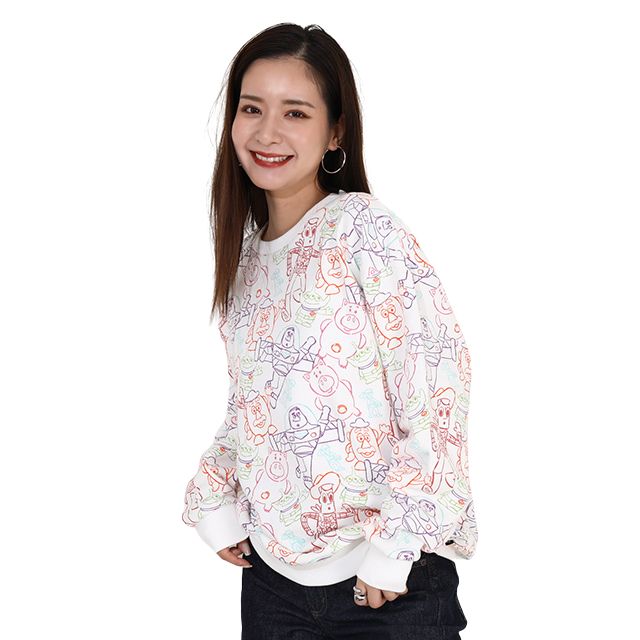 人気キャラクター達のカラフルなイラスト風総柄がおしゃれなトイ・ストーリーのトレーナー★