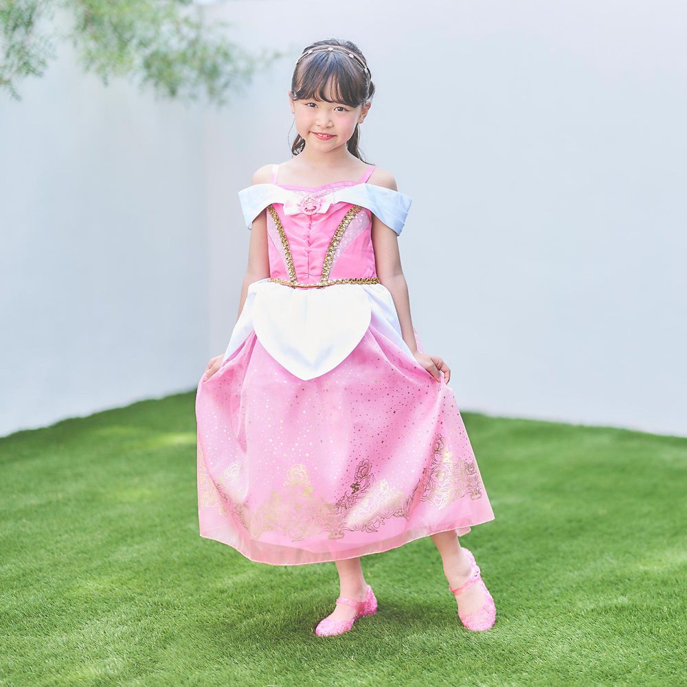 リボンにご注目。ディズニープリンセス オーロラ姫のキッズ用ドレス。