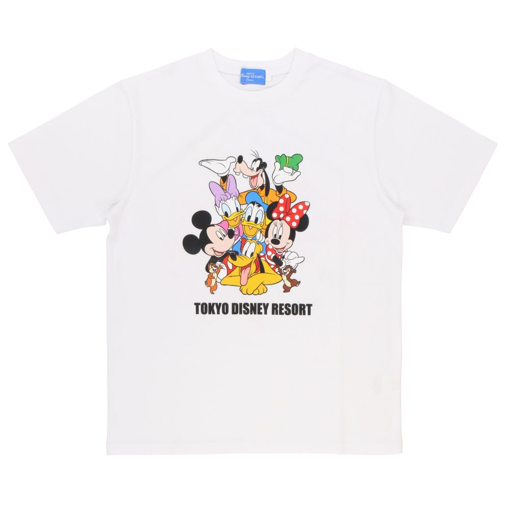 ミッキーマウスと仲間たちがデザインされたTシャツ。