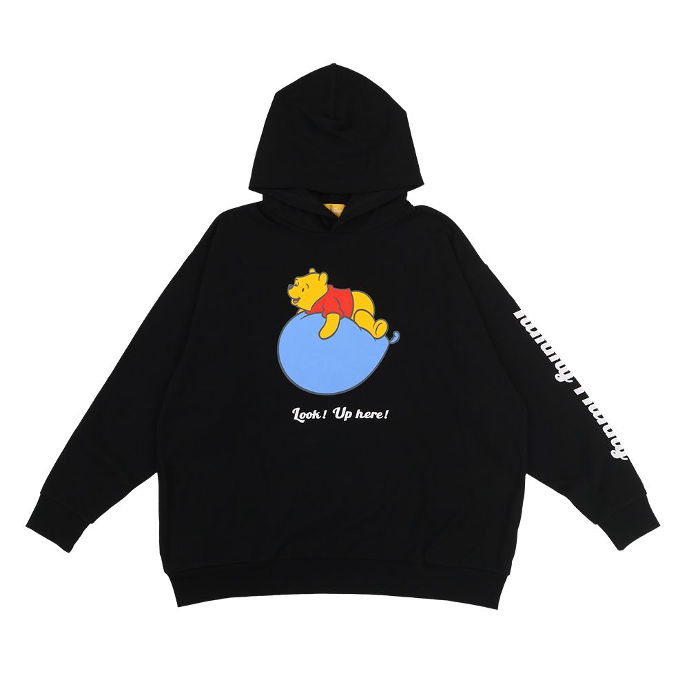 プーがブルーの風船に乗っている姿がかわいらしいデザインのビッグシルエットのパーカー。