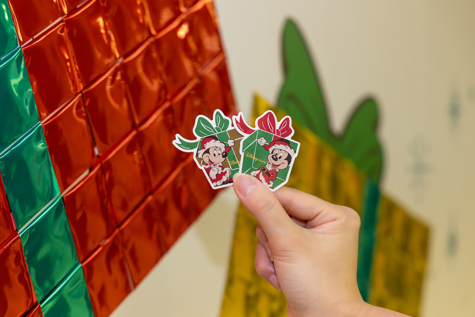 ポスターには数量限定のプレゼントとしてオリジナルステッカー (非売品、ランダム5種) を貼付しました。ステッカーを手に取ったゲストからは、「ミッキーたちからのプレゼントに思わず笑顔になれた」「今日一日が良い日になりました」など、心温まるお声をいただきました。