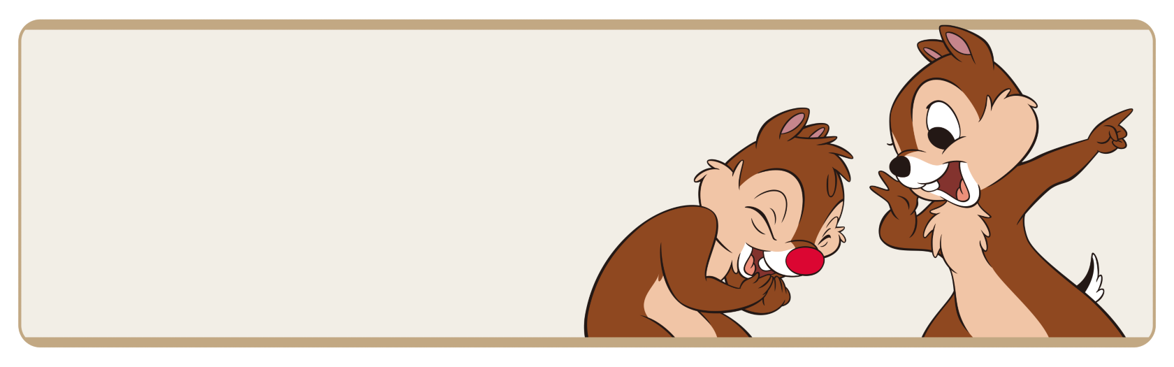 シマリスの仲良しコンビ、チップ&デール。どっちがチップでどっちがデール? 黒い鼻で歯が中央に一本あるのがチップ、赤い鼻で歯が二本あるのがデールです。性格は正反対ですが、とっても仲良し。『プルートの二等兵』でスクリーンデビューを果たした4月2日がチップ&デールのバースデー!誕生日や、チップ&デールが大好きなどんぐりの季節の秋にはふたりの特別なグッズがたくさん登場します。